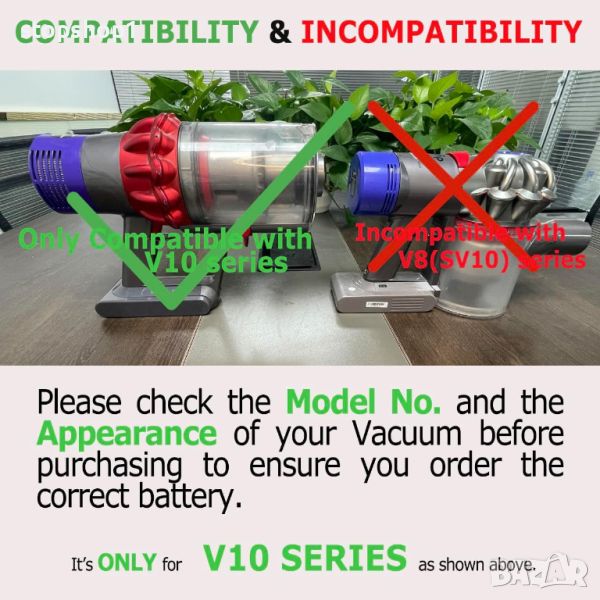 - ☆ПЕРФЕКТНА СЪВМЕСТИМОСТ С ВСИЧКИ СЕРИИ V10: Актуализираната резервна батерия V10 е напълно подходяща за всички системни части и зарядни устройства V10, като V10 Cyclone, Animal, Animal+, Absolute, Absolute+, Motorhead, Total Clean, SV12 и SV27.