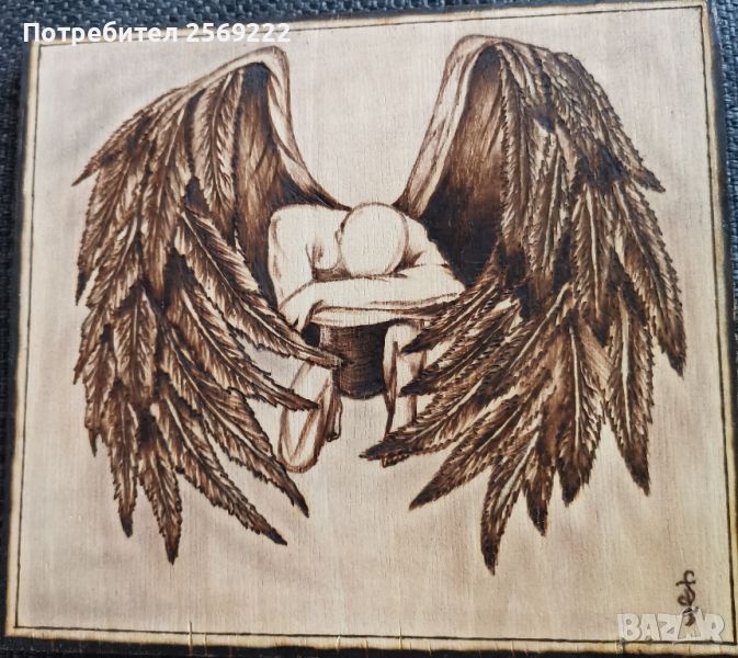 Ръчно изработена с пирограф картина на Ангел → Обява 46681702