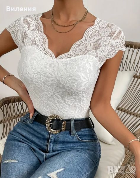 Прекрасна лятна бяла блузка с нежна дантела.