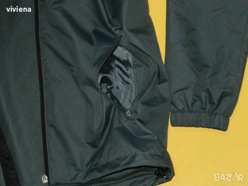 Ветровката е на HUMMEL, оригинална, нова, без забележки. Цветовете са пастелно зелено и черно. Закопчава се с цип, отпред има два джоба с ципове. В яката има качукла. Материята не пропуска дъжд и вятър, долу има ластик със стопери. Тънка подплата на дупчици, има отдушници под мишниците. Има лого отпред, на ръкавите и на циповете. По номер е L.