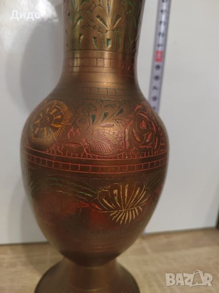 Метална ваза.Мисля, че е месингова. Ръчно гравирана и рисувана. Прекрасен предмет за декорация или колекция.