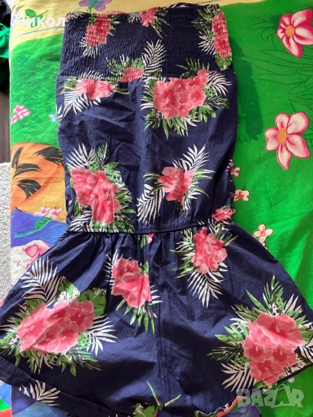 Дамски къс гащеризон от плат. Летен