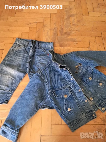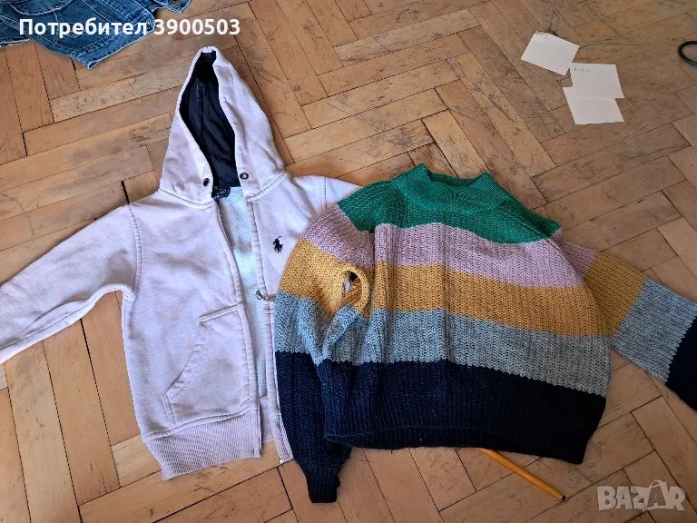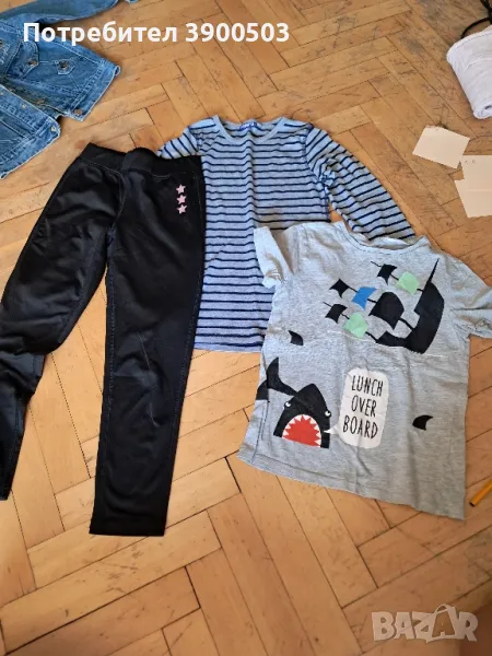 В много добро състояние са. Цената е за всичките. Тениска, клин, дънково яке, къси дънки, суитчър, пуловер и блуза с дълъг ръкав.