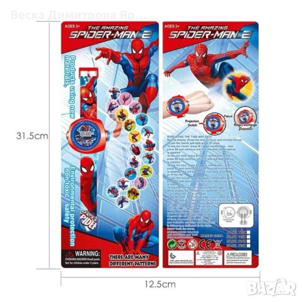 Детски ръчен часовник с любим филмов герой и функция вграден проектор на картинки с този герой.