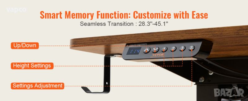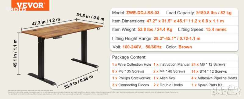 - Висококачествен електрически мотор с живот над 50 000 настройки на височината!