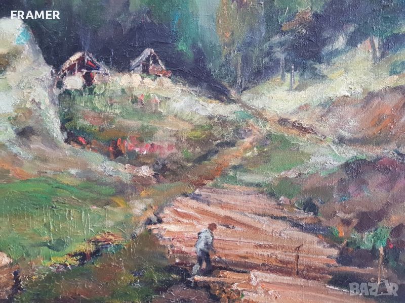 Коста Греков Чаушев чарк 1968г. Дървосекачи голяма картина маслени бои → Обява 46687832