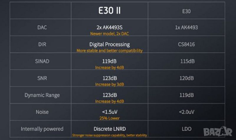 Продавам цифрово-аналогов преобразувател марка Topping модел E30 II, цвят сребрист. Kонвертора е работил много малко и е като НОВ. Пълен комплект. Topping E30II е номер едно в класацията за най-добър модел DAC на производителя за 2024 година.