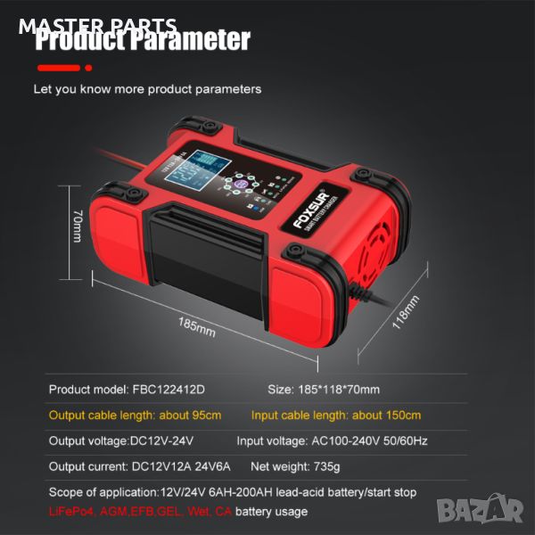 АвтоЗарядно #МотоЗарядно #КамионноЗарядно #МикропроцесорноЗарядно #LCDДисплей #АвтоматичноЗареждане #РемонтнаФункция #РегенерацияНаБатерия #SwitchModeТехнология #12VЗареждане #24VЗареждане #ТемпературнаАдаптация #ПолярнаЗащита #КъсоСъединение #Пренапрежение #ЗащитаОтПрегряване #ВентилаторноОхлаждане #КомпактниРазмери #ЛекоТегло #ДължинаНаКабел #АкумулаторноЗареждане #CEСертификат #ЗарежданеБезПрезареждане #РъководствоНаАнглийски #ЗарежданеНаSLAБатерии #AGMБатерии #ЛитиевиБатерии #LiFePo4Батерии #ЕлектроненДисплей #ПъленКонтрол #РежимFloat #ЗащитаОтОбратнаПолярност #УдобноЗаПътуване #АвтоАксесоари #ПоддръжкаНаБатерия #ЗарядноЗаВсякаквиУсловия