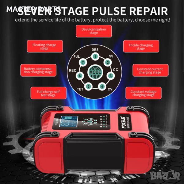 Разполага с функция десулфатизация! Функцията "Repair Mode" помага за възстановяване на изтощени и сулфатизирани батерии, удължавайки техния живот.
