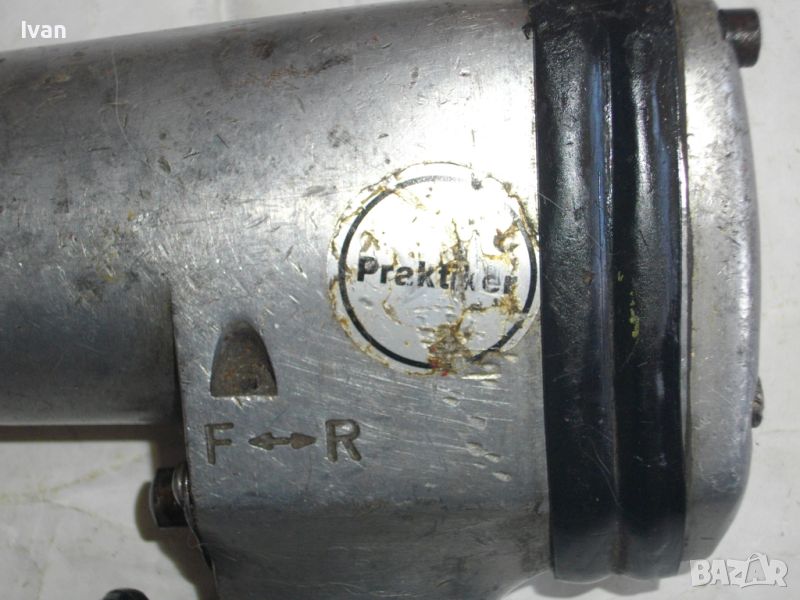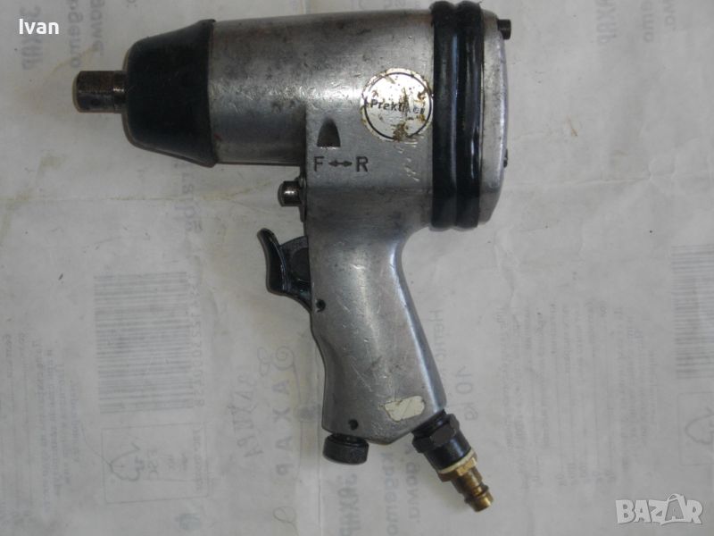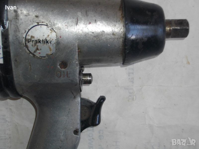 ОПИСАНИЕ на сив иноксов неръждавейка гайковерт - 129 лв. ОТЛИЧНО техническо работно състояние. Работи много добре ,без забележки, силно и мощно. Стикери фабрични на него на PRACTIKER.Вписани данни отзад за марка и модел - LDL-101 K. 1/ 2 Antrieb Schlagschrauber Salz. Кврдрат размер 1/2. Тегло на гайковерта - 2, 000 кг. Регулатор на сила удар. Реверс смяна посока. Поставена бърза връзка/адаптер за скачване с маркуч на компресор.