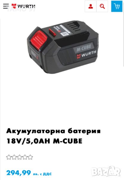 Продавам нова акумулаторна батерия на Вюрт 18V 5.0Ah с индикатор от серията M-CUBE внос от Франция.Пращаме с опция преглед и тест с куриерска фирма еконт може и лично предаване за гр. Шумен. Магазинската цена е: 295лв.