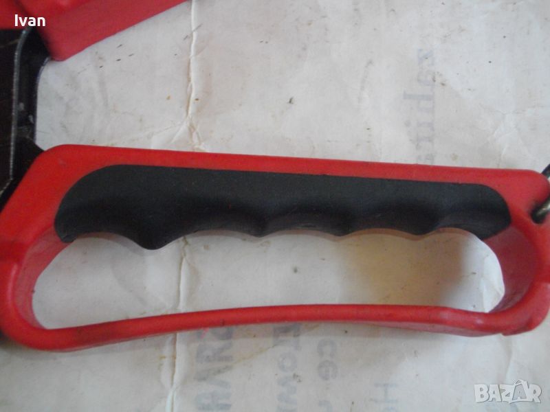 Почти нови, много запазен външен вид, отлично техн. състояние. Цялостна дължина - 195 мм, ширина - 95мм. Стоманена глава, гумирана задна част на главата ,гумирани релефни нехлъзтащи се, противоударни покрития на двете дръжки. Предната дръжка е с защита на ръката - гумирана изцяло при пръстите. Заключваща скоба на дръжките.