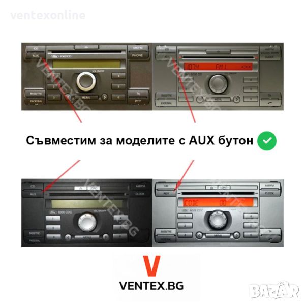 Bluetooth адаптер за Ford радио 6000CD с AUX и USB флашка, блутут форд