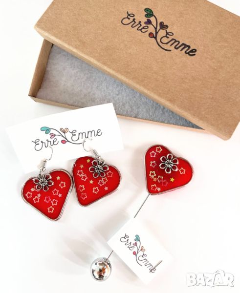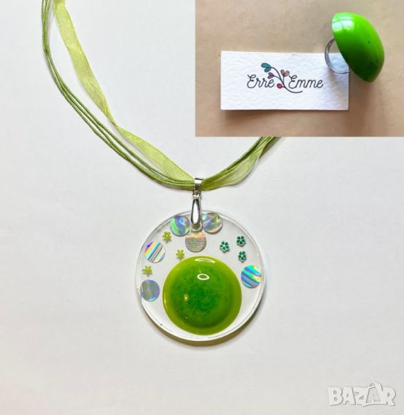 Единични бройки ръчно изработени комплекти от бижутерийна епоксидна смола и вградени в нея декоративни елементи и бои.