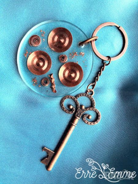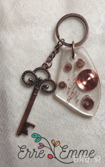 Единични бройки ръчно изработени ключодържатели / аксесоари за окачване от бижутерийна епоксидна смола и вградени в нея метални елементи - мед, алуминий, монети, естествени цветя, бои и декоративни елементи.