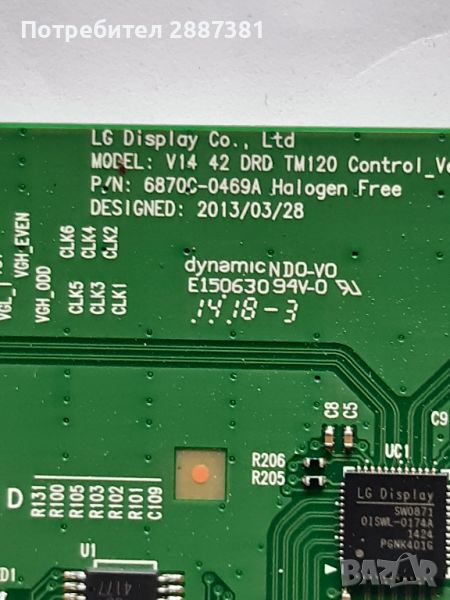 T-Con Board 6870C-0469A V14 42 DRD TM120 Control_Ver 1.4B - 40лв.