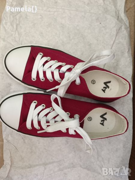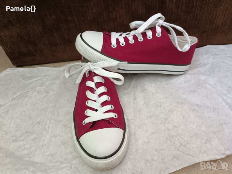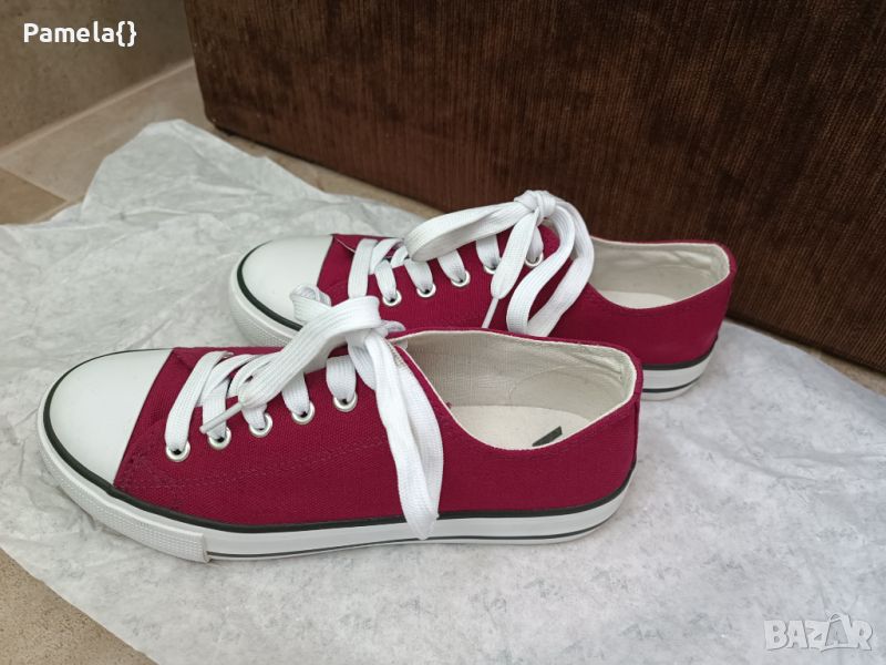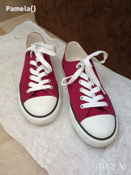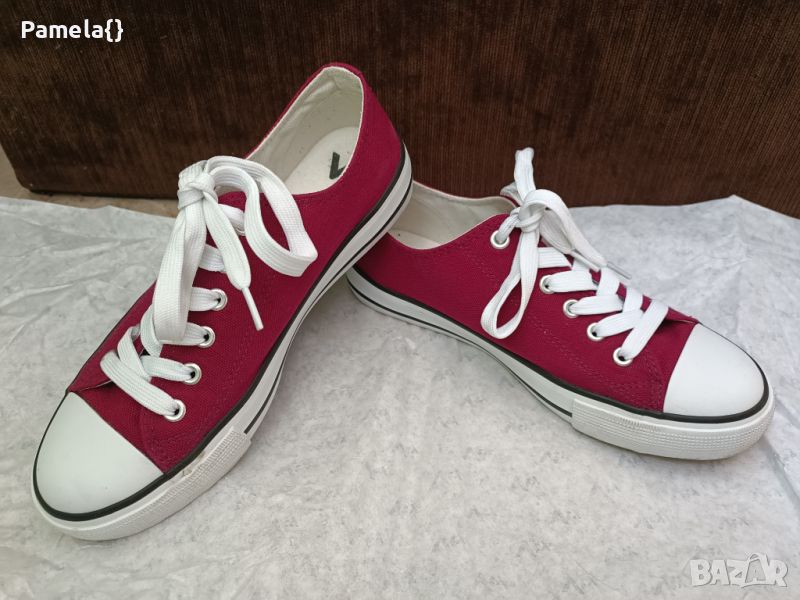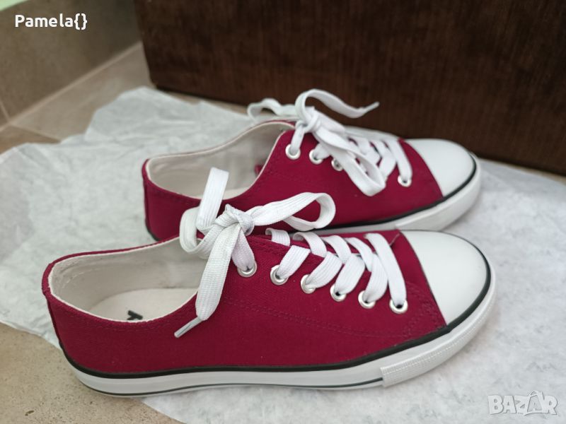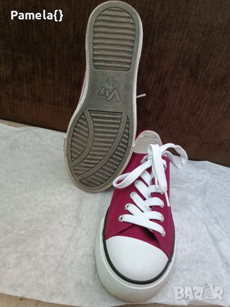 Дамски кецове, цвят бордо, обувани веднъж. Номер 37, стелка 24см.