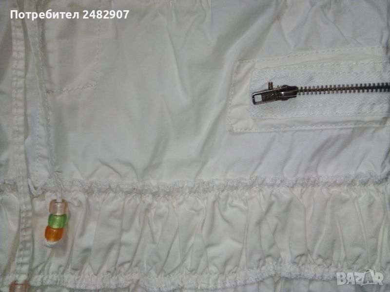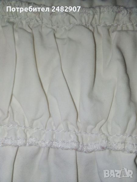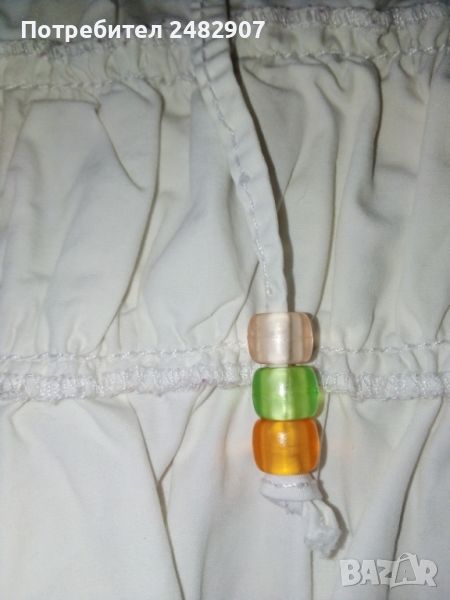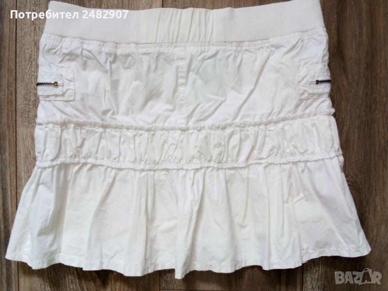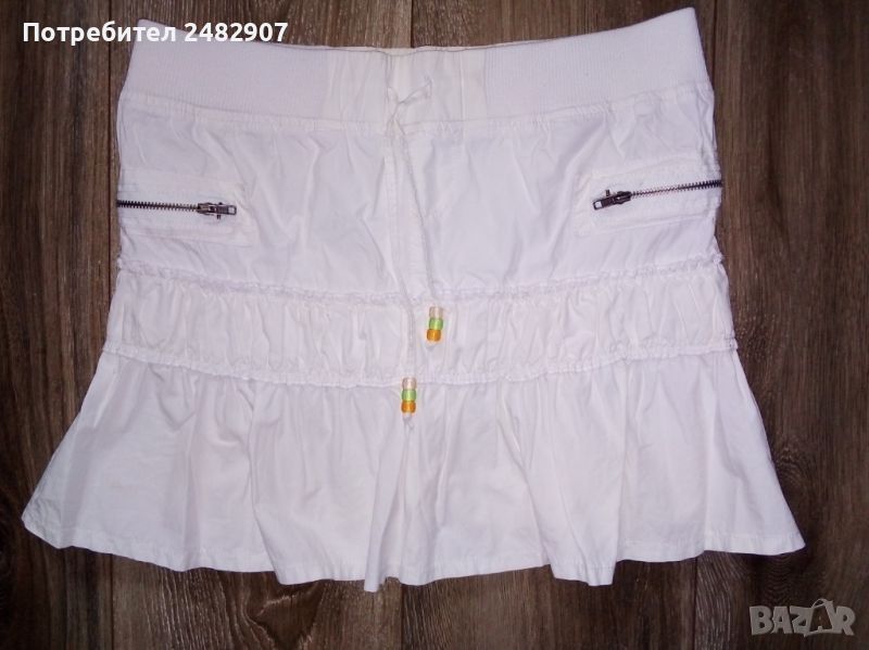 Бяла детска лятна пола за ръст - до 152 см. Съдържа 100 % памук. Ширина в талията - 36 см, ширина в долната част - 55 см, дължина от талията до долу - 34 см. Много запазена, почти не е използвана.