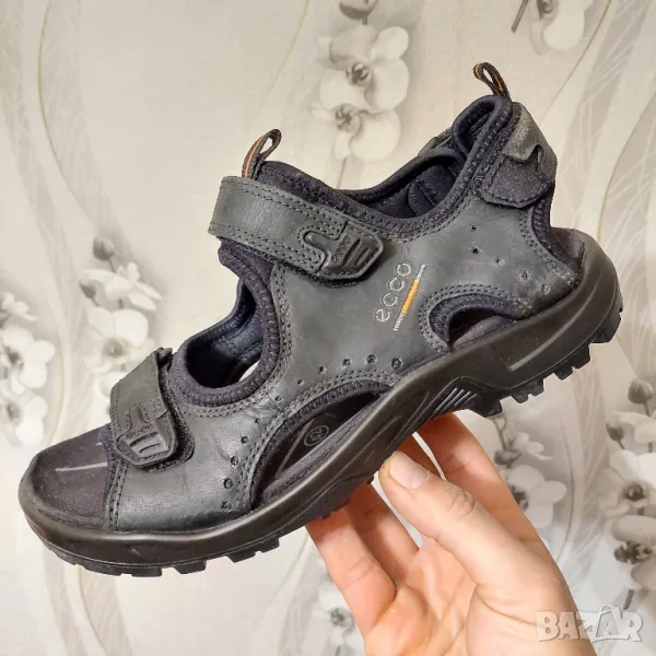 Леки и удобни . Комфорт , стил , качество .Можете да се справите дори с най-трудния терен в този здрав сандал. Изработен от леки, но здрави материали, които ви осигуряват оптимална опора и комфорт през целия ден. Перфектен както за пешеходната пътека, така и за градските улици. Горната част е изработена от мека кожа набук с три регулируеми презрамки, покрити с неопрен. Леката, формована EVA стелка е подплатена с мек микрофибър, който осигурява допълнително окачване и стабилност. Междинната подметка е шприцована с DIP технологията на ECCO, която осигурява допълнителна опора през целия ден.. Нашата иновативна технология RECEPTOR® осигурява оптимална опора от удара на крака ви в земята, докато не потеглите отново. Солидната и издръжлива външна подметка е изработена от гума, която осигурява фантастично сцепление дори и в най-трудния терен. Създаден за разглеждане на градските улици или извън утъпканите пътеки, този издръжлив сандал е вашият универсален спътник при ходене. Използвахме нашата първокласна, мека кожа набук, за да осигурим стилно надграждане на спортния външен вид. И сме го подплатили с неопрен за меко омекотяване на голата ви кожа. Подметката също е подобрена с използването на нашите технологии ECCO FLUIDFORM™ и RECEPTOR®. Те се комбинират, за да насърчават по-естествено удобна крачка, както и да поддържат и омекотяват всяка стъпка, която правите. Междинната подметка от PU пяна FLUIDFORM™ технология безпроблемно се свързва с горната част и подметката, като същевременно притиска крака за по-голям комфорт, Технологията RECEPTOR® в подметката съчетава специално закръглена пета, интегрирана вътрешна дръжка в средата на крака и двойни гъвкави канали, които осигуряват анатомична опора и стабилност при ходене, за да повишат комфорта в движение. Цялата гумена подметка осигурява отлично сцепление на разнообразни терени. Издръжлива, наситено боядисана набук кожа с една странична лента и триточкова регулируемост, за да се осигури удобно и лесно прилягане. Неопреновата подплата е мека и омекотяваща за комфорт. Анатомично оформено стъпало. Удивителен комфорт.