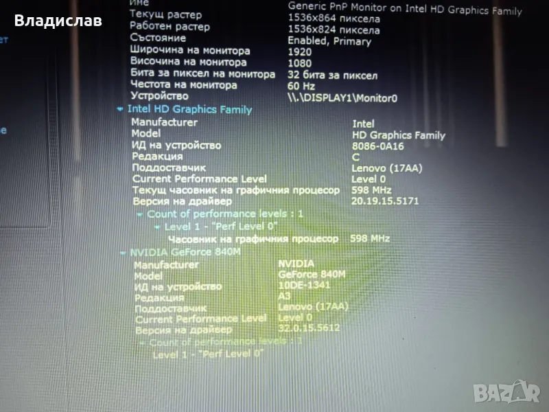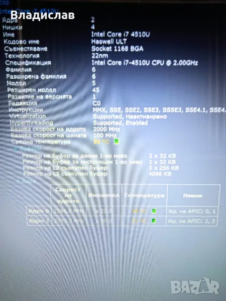 Работещо дъно с процесор Intel Core i7-4510U и видеокарти Intel HD Graphics 4400 1GB и NVIDIA GeForce 840M (2GB DDR3) продадено