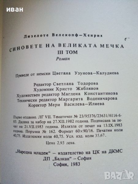 Синовете на великата мечка том 3 - Лизелоте Велскопф-Хенрих - 1983г. → Обява 46698115