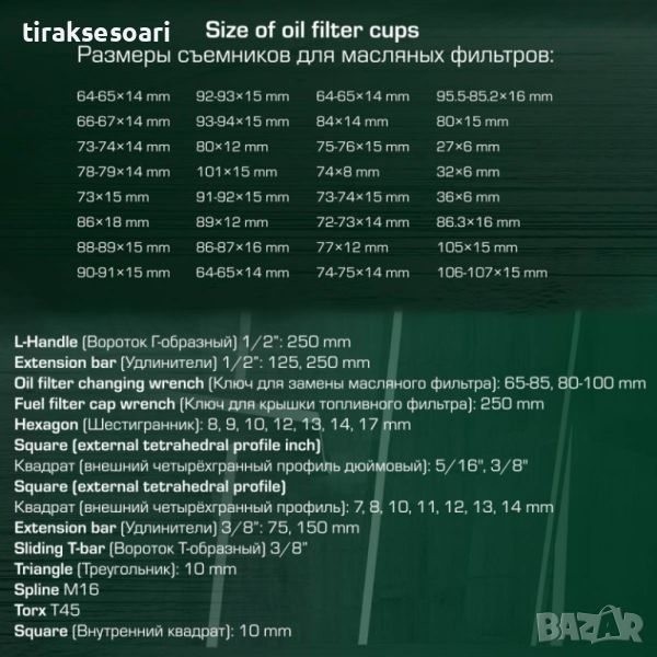 Професионална пневматична масларка , в комплект с 61 части - скоби и ключове за картер .