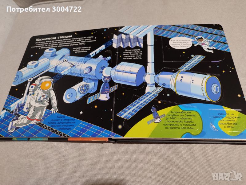 Детска образователна книга за космоса на издателство Фют.Книгата е в много добро състояние.С твърди корици.