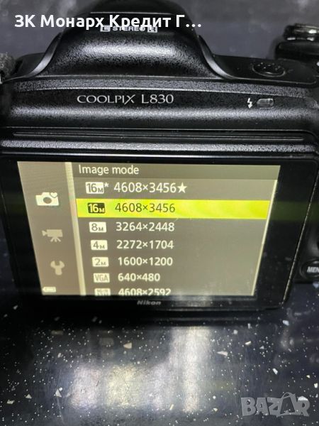 Размер на изображението (пиксели) : 16M [4608 x 3456]; 8M [3264 x 2448]; 4M [2272 x 1704]; 2M [1600 x 1200]