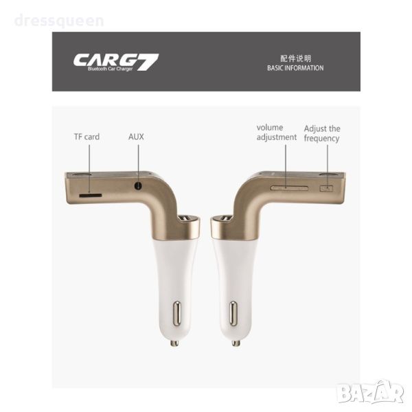 Размерите на мултифункционалното устройство са 100/22/25 милиметра и то е съвместимо с автомобили с аудио система или МР3. Марката на продукта е Onever и се захранва от 12V при външно захранване 20Hz-15Khz честота на предаването . Устройството се предлага в два атрактивни дизайна на сребърно или златно.