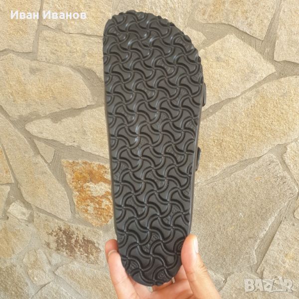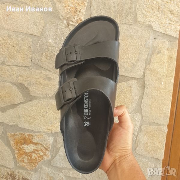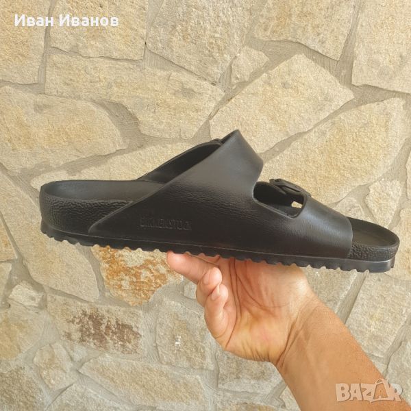 Birkenstock ARIZONA номер 46Birkenstock ARIZONAНови EVA дизайнът на популярната класика Birkenstock също може да се регулира според вашите собствени нужди и да прегръща крака. Благодарение на основния материал EVA, моделите са особено подходящи за използване в басейн, сауна или други мокри помещения или идеален спътник за ден на плажа. Освен това всички EVA модели на Birkenstock впечатляват с ниското си тегло. Почистват се лесно, а гъвкавата EVA подметка нежно омекотява всяка стъпка.Абсолютно необходимо за лятото, тези мъжки сандали Arizona Eva от Birkenstock ще ви накарат да стъпвате с пълен комфорт. Пристигайки с класическия дизайн с катарама с две каишки в горната част за сигурно прилягане, сандалите разполагат и с формована стелка, за да ви осигурят ненадминато прилягане. Поставени върху EVA междинна подметка за чувствително усещане при всяка стъпка, те също имат текстурирана външна подметка за сигурно сцепление. Сандалът е завършен в черен цвят с марка Birkenstock на стелката, външната подметка и страничните стени.__Невероятно леките чехли ARIZONA на марката Birkenstock мислят за краката ти. Затягащите се каишки през горната част на ходилото и удобната подметка Eva много бързо ще те убедят в перфектното немско качество, благодарение на което ще издържиш с тези чехли цял ден. Независимо дали си вкъщи, или на плажа, тези чехли ще са винаги с тебе. Бъди оригинален, бъди Birkenstock!класически дизайнвъзможност за пристягане на каишките EVA през горната част на ходилотомека EVA подметкакачествена изработкапроизведени в Германия