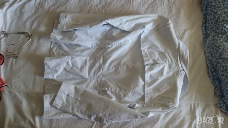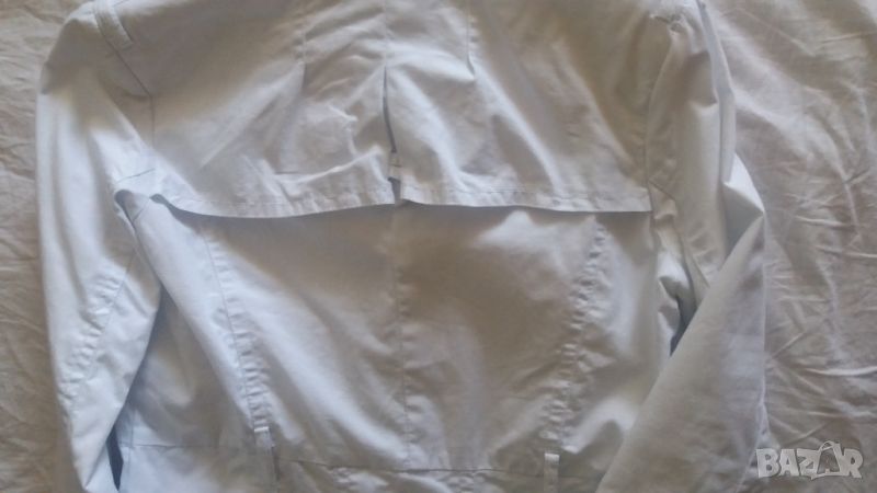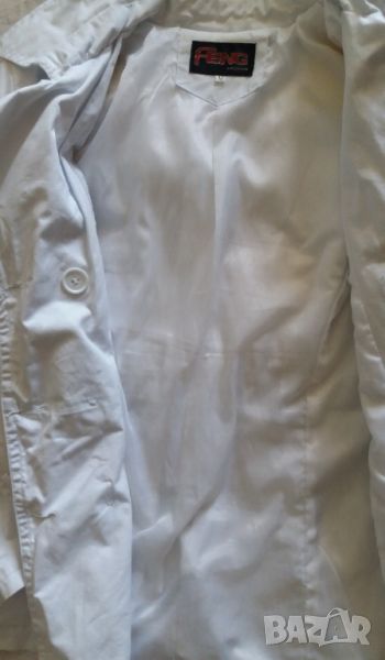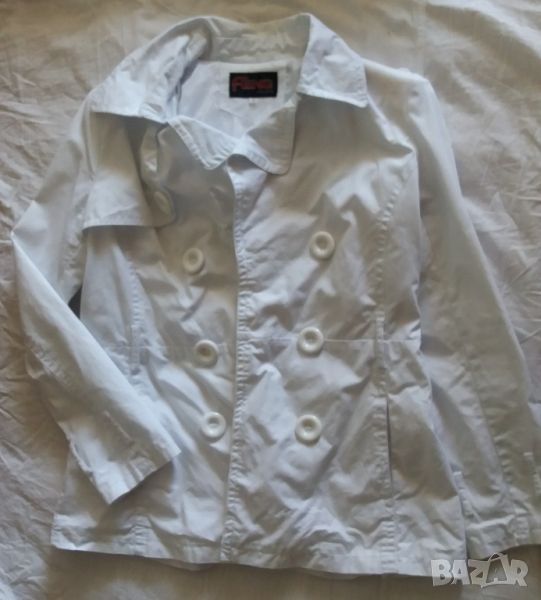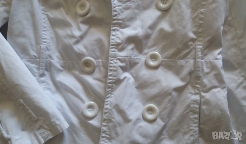 2. Бяло лятно - пролетно памучно запазено яке в отлично състояние с подплата, коланче и бели копчета. Дължина 67 см, ширина на талията 51 см. Размер М. Цена 6 лв.