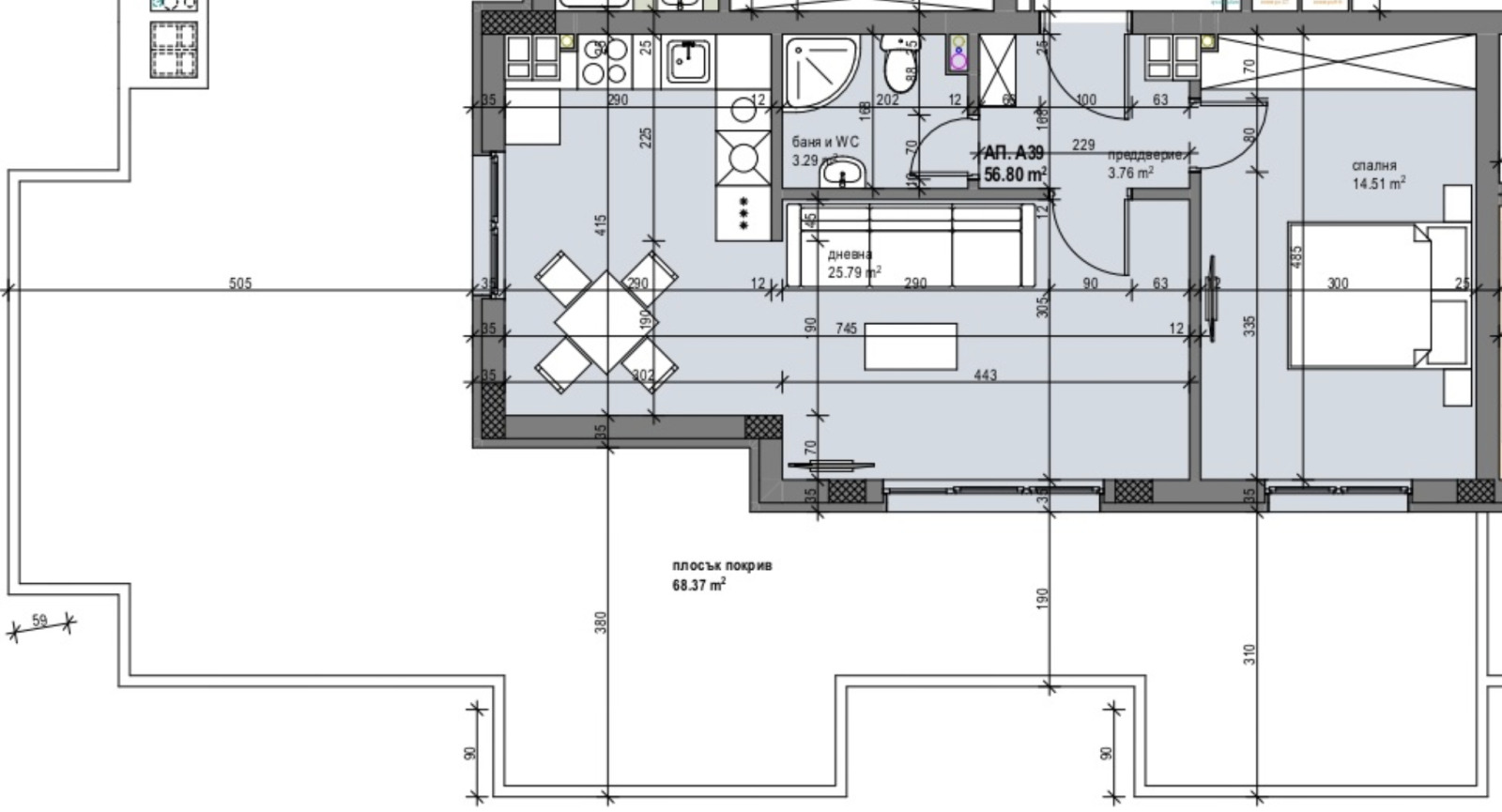 ап.А39 с тераса 68 кв.м. **Апартаментите ще се издават спрямо БДС: на шпакловка и замазка, ел. инсталация до ключ, ВиК до тапа, PVC дограма петкамерна цвят антрацит(четири сезона стъкло), луксозна входна блиндирана врата. *Монолитна стоманобетонна конструкция, външни стени керамични тухли WIENERBERGER топлоизолация и мазилка пакет на BAUMIT 10см. *Общи части на сградата от естествен гранит/мрамор. Асансьор испански ОРОНА. *Завършване на строителството 30.06.2025. *Инвеститорите на комплекса са ВАРАН ООД и ЛУКС Билдинг Инвест ООД с повече от 14 години опит в строителството и с над 30 завършени проекти в четири областни града (София, Пловдив, Хасково, Кърджали) За повече информация се свържете на: тел. 0884500130