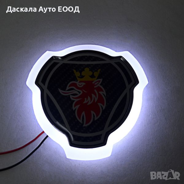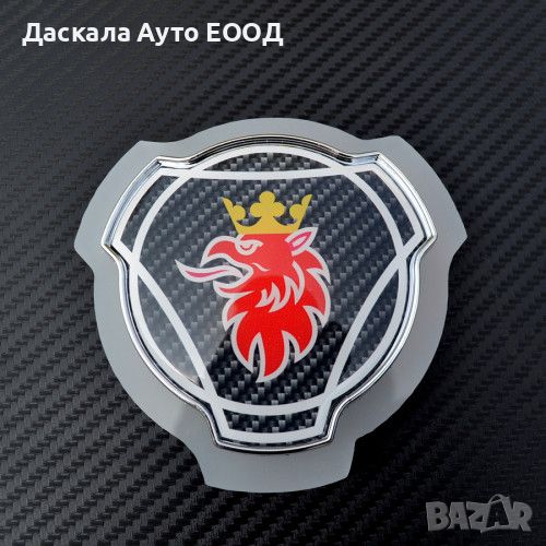 Огледална табела Scania карбон с червен грифин външна за решетка 12-24V → Обява 46703379