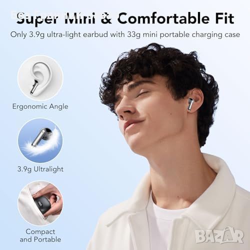 Компактни и водоустойчиви IP7: Лек дизайн, всяка слушалка тежи само 3.9г, удобни за продължително носене. Защита от пот, дъжд и вода.