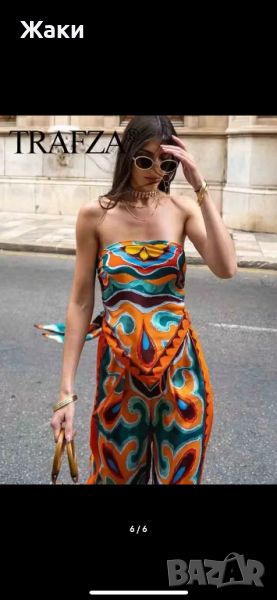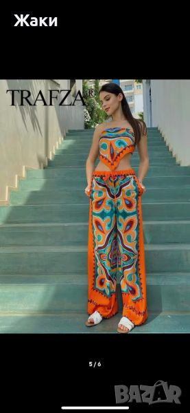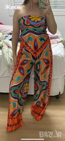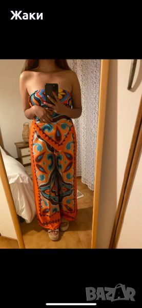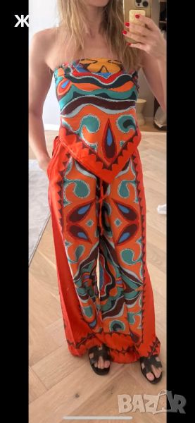 Продавам този летен много стилен и свеж комплект. Тънка материя и ярки цветове. Панталон с топ, който се връзва, купуван за 50лв