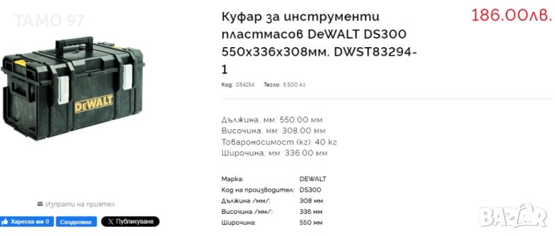 Продавам чисто нов голям куфар на Девалт Toughsystem DS300 с гъбената вложка, която има може да се слагат три машини като