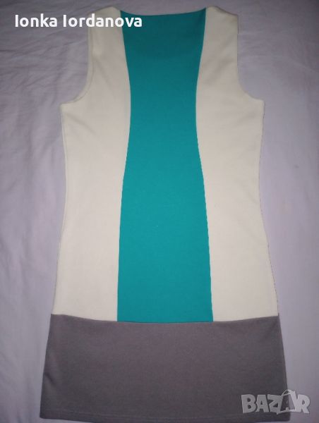 Елегантна рокля от мека и разтеглива материя.С елегантна линия и интересно съчетани три цвята.С дискретно деколте.