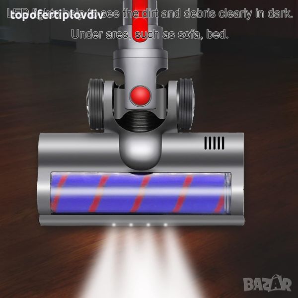 Удобна Предната част на четката е оборудвана с четири независими LED светлини, които осветяват долната повърхност по време на почистване, особено в слабо осветени помещения като под масата, под дивана и други места, прахът няма да избяга никъде.