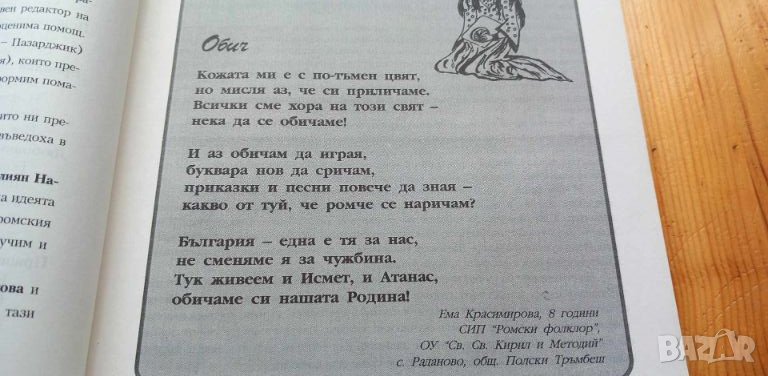 Първо издание на помагалото от 2003г,. В него се дават отговори на въпросите кои са ромите и защо се наричат така, кои са ромските групи в България, как празнуват ромите, кои са ромските символи. Записани са приказки, разказани от роми - приказки за животни, вълшебни и легендарни приказки, битови народни приказки, приказки за Хитър Петър, религиозни приказки, анектодитчни приказки, новелистични приказки, предания и легенди. След всеки дял със съответните приказки има занимателни задачи и игри. В края на книгата са описани сватбите, празниците на ромите и семейството като най-висша ценност при ромите. Отделен дял е посветен на ромската инструментална музика и песните на ромите (детски, приспивни, броилки, любовни и сватбени песни, празнични песни). Дадени са някои гатанки и кръстословици.