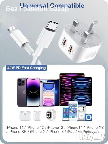 Ново Бързо зарядно 20W за iPhone и iPad + двойка кабели за зареждане Айфон