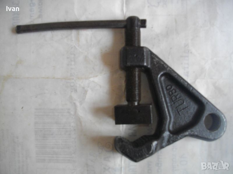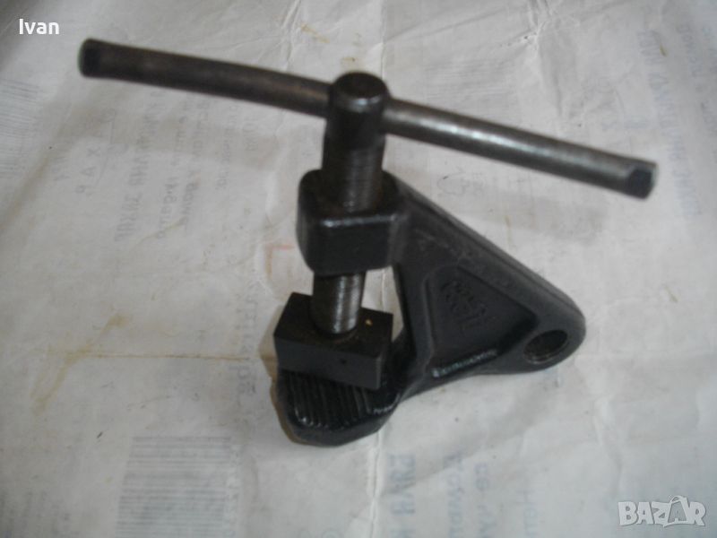 ОПИСАНИЕ на малко тръбно менгеме - 99 лв. Старо качество мини менгеме за тръби с 2 оребрени челюсти за захват. Маркаи маркировка на инструмента - TURBO. Отлично работно състояние. Дължина на инструмнта - 180 мм, отваря за захват челюсти 0-60 мм. Оребрени челюсти горни долни в отлично състояние. Винтова стяга отгоре. Прорез в основата за захват към работна маса. Тегло на инструмента - 1,0 кг. Материал - закалена инструментална стомана.