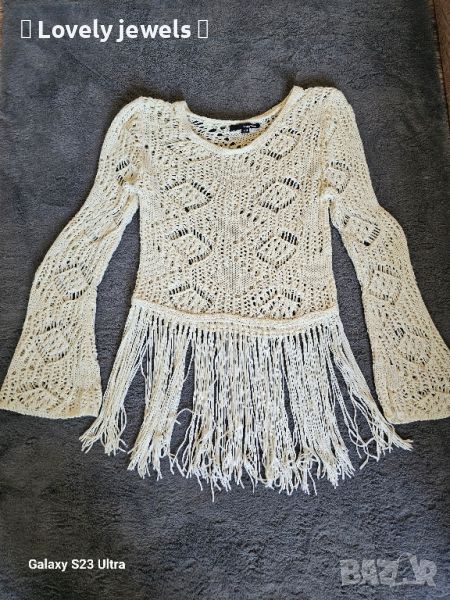 Бяла блуза с ресни дамска екрю → Обява 46709864