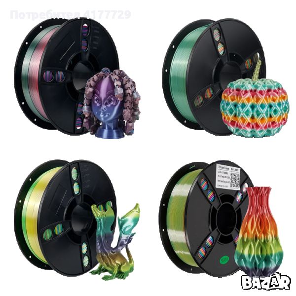 филамент,пла,пластмаса,3д,принтер,принтери,фдм,filaments,black,3d,fdm,силк,silk,rainbow,дъга,цвят,нишка