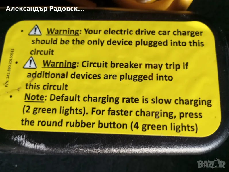 Технически данни за зарядната станция: Работи с входящо и изходящо напрежение 120 V , 12 A , Type 1.