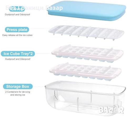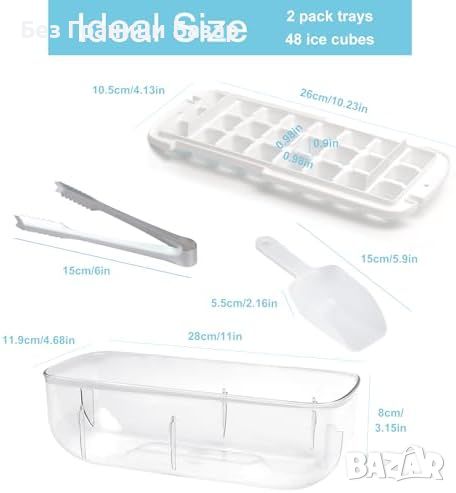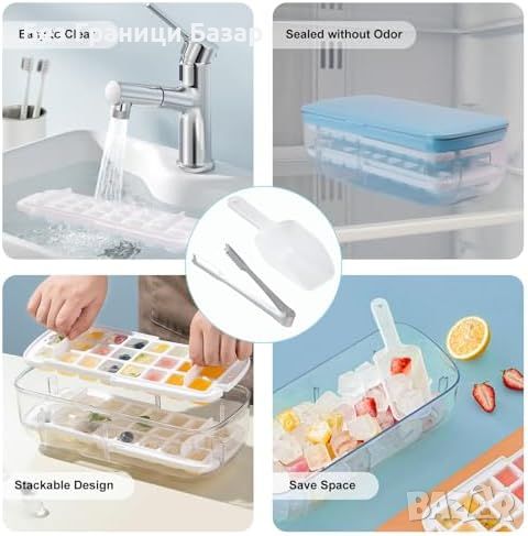 Нова 2-етажна форма за лед с капак и кутия - 48 кубчета, лъжичка и щипци