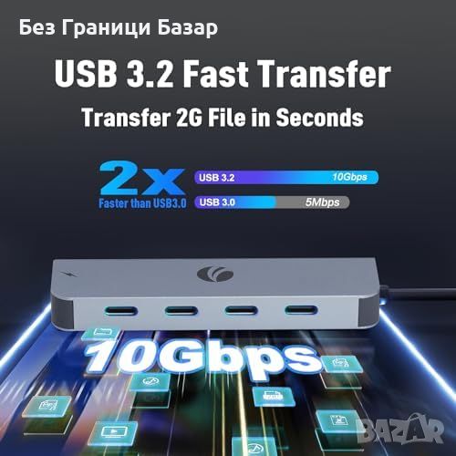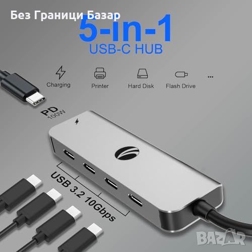 5-в-1 USB C хъб с 4 USB C 3.2 Gen 2 порта и 100W захранване