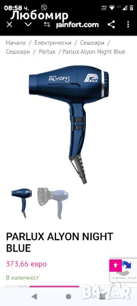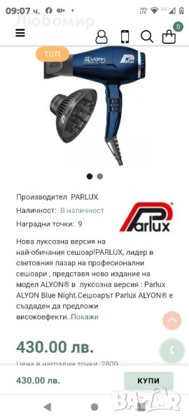 Тестван Сешоарът Parlux Alyon Night Blue + Magic Sense изсушава косата ви бързо и ефективно и помага да придадете на прическата си повече обем.