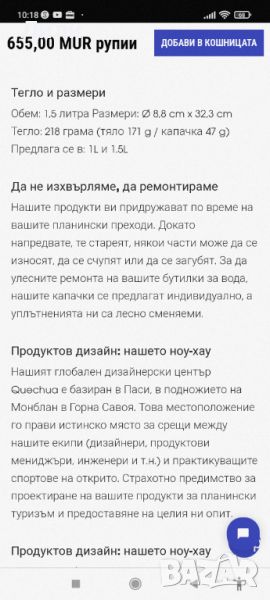 Алуминиева бутилка за вода 1.5 литра Quechua → Обява 46711760