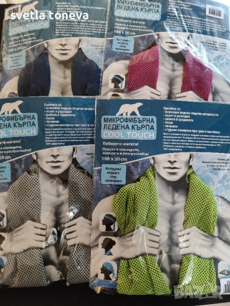 Микрофибър на Ледена кърпа.Цветово решение:сиво,тъмно синьо,циклама,зелено.Подходяща за охлаждане през летните горещини,при настинка и грип помага за понижаване на температурата.Подходяща за спортисти,за плажа,за разходка,за излет или почивка,за работа в градината.като студен компрес при нужда