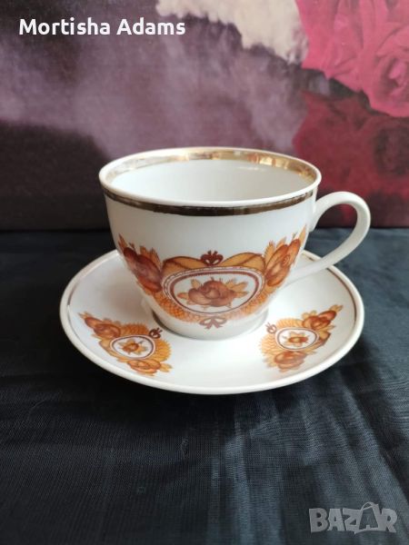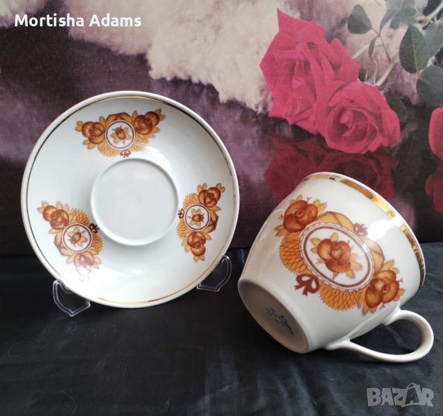 🏵️ Чудесен комплект за чай, Полонский фарф. завод, период 1980- 1991г. Употребяван, със забележки по позлатата.
